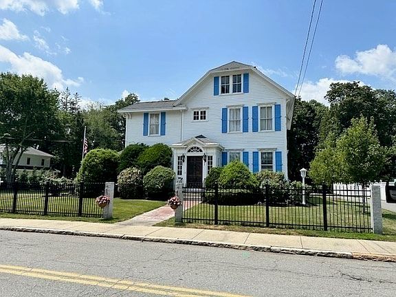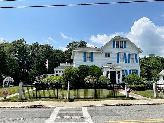This eleven room majestic colonial style home from the early 1900's offers 5 large bedrooms, two and a half bathrooms, with exceptionally large oversized closets. The hardwood floors glisten when the sunlight fills the rooms. There is a three car garage with a built in freezer, as well as a circular drive for easy parking. There are manicured garden areas throughout the property, as well as a gazebo and fruit trees that line the driveway. This 3.04 acre parcel abuts Capron Pond,the backyard has a very private wooded trail with a firepit for family get togethers or just to sit, relax, and watch the sun set over the pond.