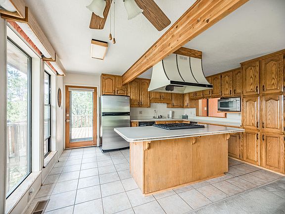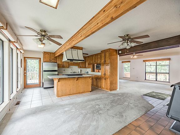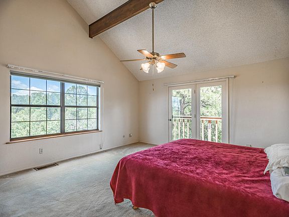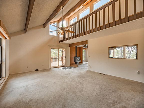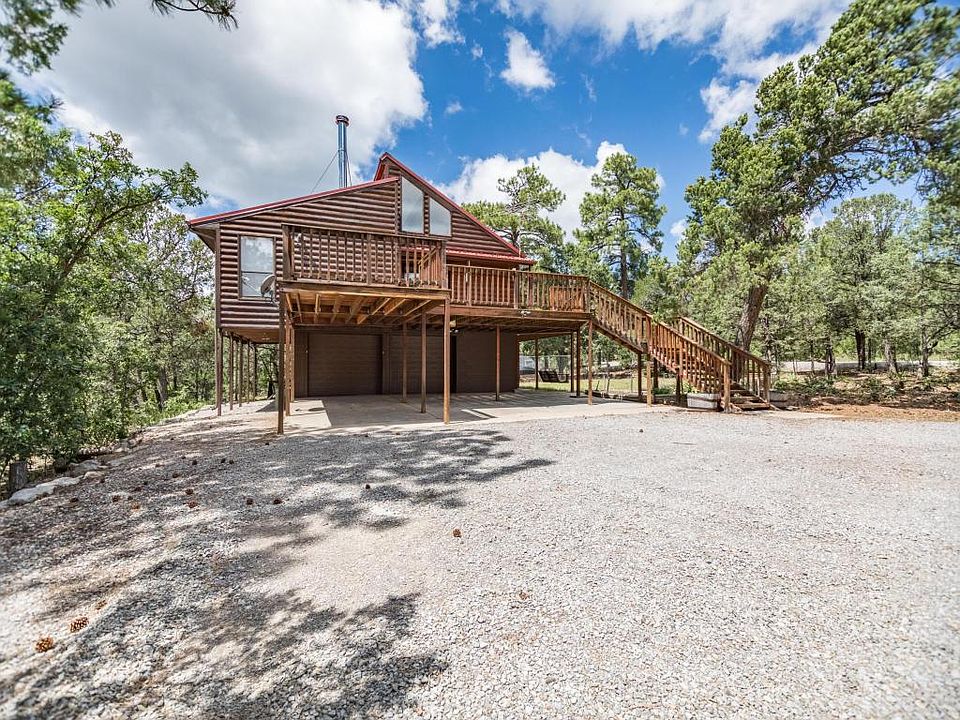 Private mountain retreat nestled in the Ponderosa Pines on almost 5 gorgeous wooded acres. Cozy log cabin style home with expansive decks and sweeping views, large picture windows let in tons of light and make you feel like your in a treehouse! Oversized 2 car garage has a workshop space, plus unfinished ajacent area is perfect for storage, an extra fridge and freezer and even a man cave! Open concept flowing living space, soaring ceilings with wood beams and loft space above that could be used as an office or a perfect cozy sun spot for fido! Large kitchen with island, solid wood cabinets and updated appliances. Awesome metal RV shed, and firewood shelter. Easy scenic commute to Albuquerque, just 25 minutes!