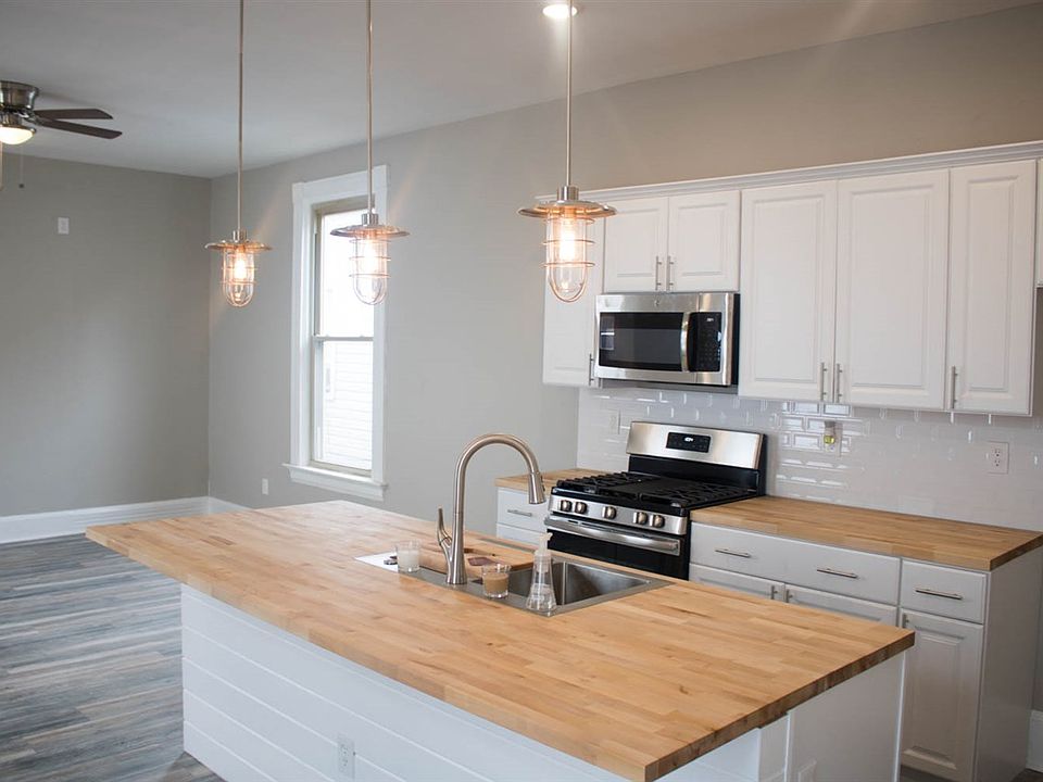 Check out this beautifully remodeled Home!!!! 2 Bedroom 1 full bath The remodeled kitchen has stainless appliances, new cabinets, a large center island with butcher block counter tops through out which gives a unique feel. New roof, HVAC, Electrical, Plumbing and insulation . Come make this your new home sweet home!!!!