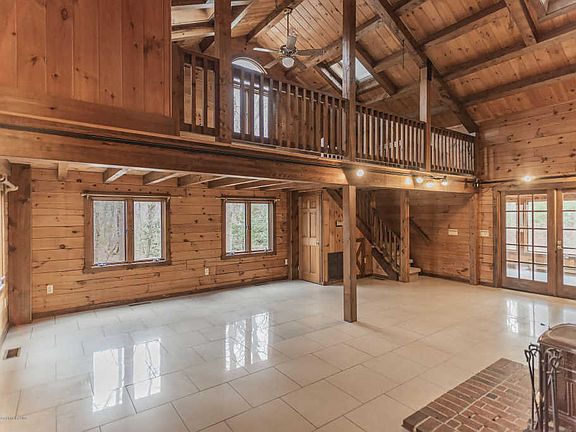 One-of-a-Kind classic Log Cabin home set on a gorgeous 2+acre lot.Magnificent location near Reservoir offers a secluded paradise yet close to Rt 9 corridor. Rustic wood interior has dramatic beamed ceilings and soaring vaults throughout. Kitchen with upgraded Stainless Steel appliances and granite countertops. Dramatic 2-story Family Room with cathedral ceiling has skylights and wood burning stove for stunning effect. A large open Loft overlooks the Family Room from above. All 2nd floor bedrooms have vaulted ceilings. Full walkout basement with large finished space plus work & storage areas. New carpets installed. Be the first to claim this truly unique home!