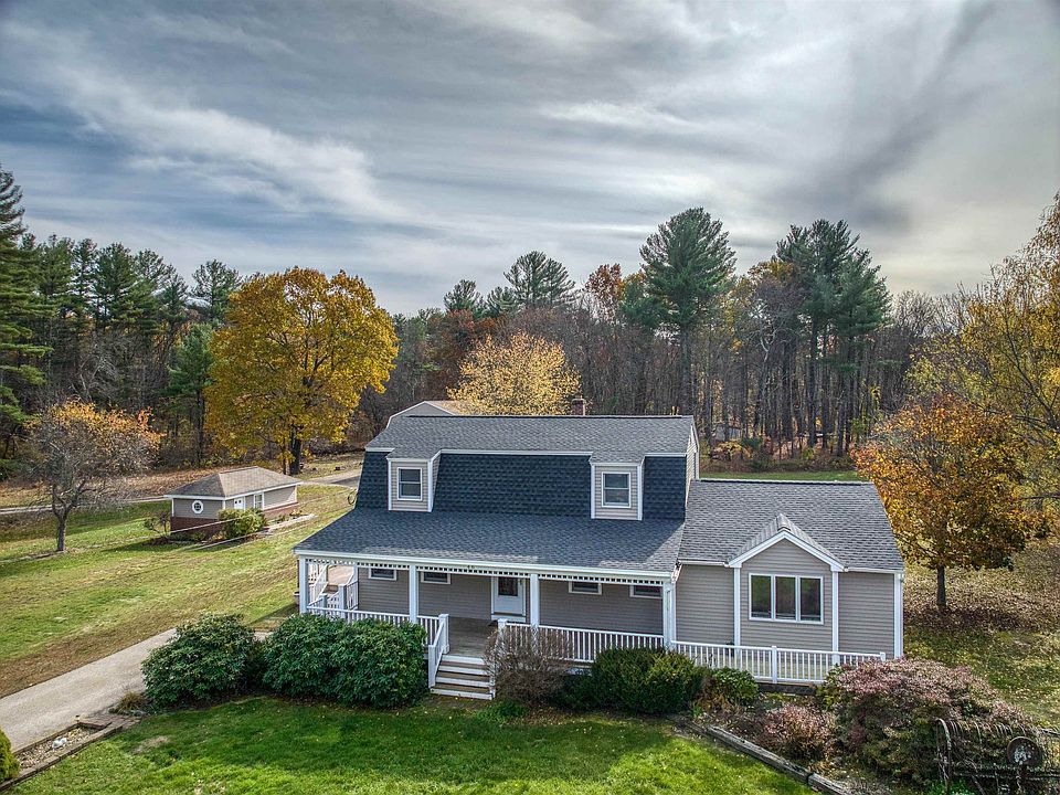 NEW PRICE This home offers a farm house vibe with modern amenities in a country setting all with Brand New Roof and Vinyl Siding, The kitchen has an open plan with stainless appliances and a center island that opens to a large dining area. The living room is freshly painted with brand new carpets. There are 3 bedrooms and 2 full baths. The primary bedroom has a full bath with a jet tub that has access from the bedroom. There are gleaming hardwood floors in the main home. Attached is an *in-law apartment, perfect for family members or rental income*. The In-law has a kitchen with stainless appliances, room for table and separate sitting room with hardwood floors along with a bedroom and 3/4 bath. It also has its own furnace, private entrance and driveway. What really makes this property unique is the massive *30x64 detached garage perfect for a contractor or in home business*. This garage offers high ceiling, steel beams, and 3 bays. One bay has a 9' high garage door, one bay with an 8' high door and a 3rd has 6' wide double doors, built in shelving and its own heat and central air. The garage also offers a partially finished 2nd floor. Enjoy all this on a beautiful private wooded 3.3 acre lot. Relax on your farmers porch or fish by your own piece of the brook.