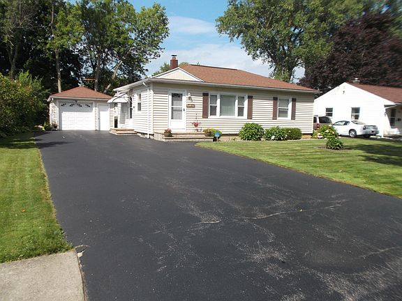 This is a must see great starter home. It is a spotless, maintenance free, ready to move in 3 bedroom ranch house. There are many updates including: newer windows, furnace & AC, vinyl siding, 2 car driveway, refurnished hardwood floors throughout living room and bedrooms. Recently updated kitchen with tile flooring. 2 refrigerators, 2 stoves, washer and dryer included. Newly installed block basement windows. Backyard includes concrete patio and spacious backyard.