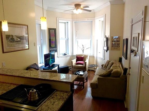 Available now & no broker fee! Sunny fully furnished condo in historic Fort Hill. New fixtures, windows, hardwood floors, stainless steel appliances in unit laundry and granite countertops. Bedroom has a desk to WFH. Rent includes gas, heat, hot water, electric and wifi. Easy on street parking, minutes from area hospitals and steps to public transit!