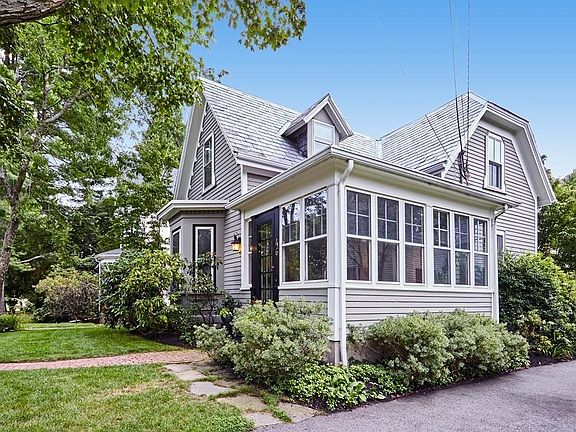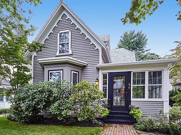 A rare blend of Victorian character with a modern interior. This open and sunny home is as warm and comfortable as the neighborhood where it is located. Lovingly cared for, this home has fit the needs of a family with children, a couple and a single person.The gracious living room leads to both a music room / den and dining room. Gatherings usually take place in the kitchen with counter seating for 4 and a room for a sofa or dining table. Double ovens, 5 burner gas stove, and plenty of cabinets should fit all your cooking needs! A very private backyard with a large patio is surrounded by a beautiful perennial garden. Good sized master bedroom with built-in cabinets leads to the closet of your dreams including a washer and dryer.This was the 4th bedroom! There is an option to add a small master bath. Two other bedrooms are on the second floor with one full bath. The garage will fit one car. Perfect location! 5 minutes to Mass Pike,128 and a walk to the T and commuter rail.*