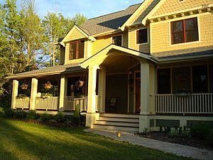 Exquisite custom built Craftsman home w/open floor plan, 9 ft ceilings + gorgeous finish details throuout. Enjoy Brazilian cherry flrs, custom oak staircase, built-ins + wide moldings + window seats, custom cherry kitchen w/center cooktop island. Spacous Great rm accented w/gas fp. Formal dining rm filled w/sunlight. Enjoy summer entertaining on the covered mahoghany wrap around porch, tiered deck + screened porch overlooking private yard w/ invisible fence. A special home designed by architect Peter Steer + custom crafted by Jeff Lang. 3146 fin sq ft plus add'l 600 sq ft in the finished lower