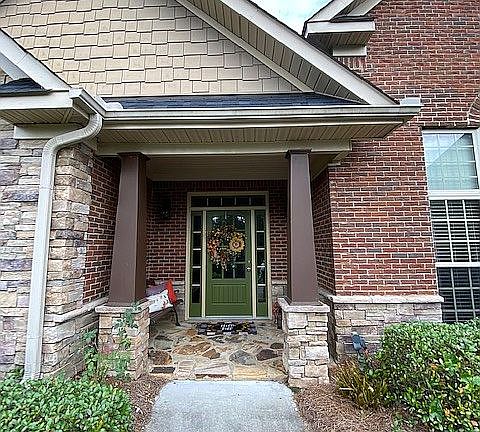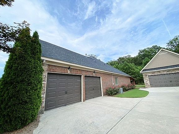 Home for sale in the beautiful Cider Ridge Community in Oxford, AL featuring an 18 hole golf course, community pool, and tennis courts. This brick/stone home features 4 bedrooms, 3 baths, open concept with the privacy of the Talladega National Forest bordering the backyard. There is over 3,000 square feet of living space, vaulted ceilings throughout including all bedrooms. One large bedroom and bath are located on second floor while all others are on the main level. Double sided gas fireplace in living room and bonus room. Formal dining is off the living room, and there is also an eat in kitchen. Gas stove and two pantries are featured in the kitchen. Island in the kitchen offers additional seating for 5. Kitchen and master bathroom cabinets were both recently painted. Sprinkler system in front and back yard with outdoor firepit. Also, there is a large, covered porch with natural gas grill and outdoor television. Additional detached garage with overhead storage and additional parking for 2 cars was added in the last 3 years. The house has a large extended attic storage above the attached 2 car garage with lighting and flooring for additional storage. This home has ample closet storage, LVP flooring throughout the main level, 2-inch blinds on all windows, and 2-year-old dimensional roof.