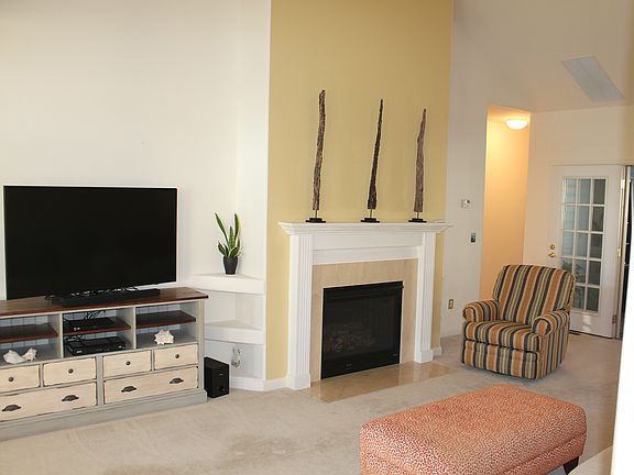 Immaculately kept ranch home situated on large corner lot featuring cathedral ceilings, hardwood and ceramic tile flooring, gas fireplace, jack-and-jill bath, and 2 car garage. The home is situated on a beautifully landscaped and irrigated oversized lot in Hearthstone Manor with a water view and just a short stroll to the community pool and amenities.