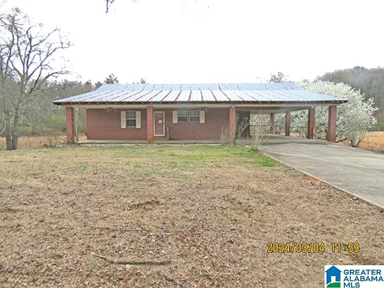 Four-sided brick ranch home situated on 6.9 acres within the city limits of Pell City. Spacious two bedroom and two bath home with 1750 sf m/l of heated/cooled living area. ...and yes the bedrooms are more than generous. The living area off the front of the home encompasses the kitchen, dining area, and family room into one massive space. Downstairs gives you another blank basement canvas space of 1652 sf m/l to build your creation(s) of your dreams. Parking is also a breeze with a four-car attached carport. All of this and more located within one minute of the downtown area and I-20. Sold in an as is condition; cash offers only. The right of redemption has expired. Ensure that you ask about the marketing disclosures that accompany this home.