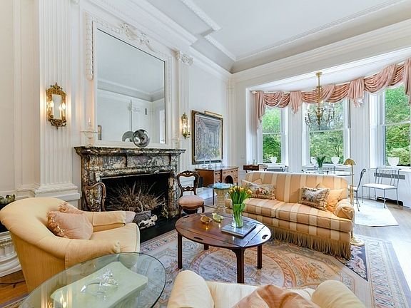 This rarely available parlor duplex is the jewel of 46 Commonwealth Ave. Nearly 14 foot ceilings, exquisite moldings and formal foyer welcome you into this special property. The custom kitchen is outfitted with top of the line appliances (Miele/ Sub Zero/ Thermidor) and honed serpentine counters. Generously proportioned living and dining room is flanked by stunning front facing windows with beautiful views of the mall. The decorative fireplace is a true show piece. The guest bedroom and full bath is nicely situated on its own floor creating privacy. Oversized Primary bedroom has en-suite marble bath, walk in closet, and second decorative fireplace. This home also features AC, in unit w/d and parking. Unmatched location on the first block of Commonwealth just steps from the garden, Newbury st, the esplanade, and the best Back Bay has to offer.
