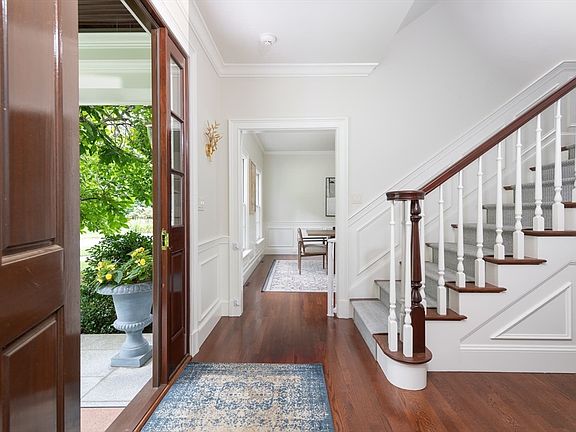 Sophisticated estate property with mature plantings and picturesque approach to tastefully renovated Colonial. Charming 4-bedroom home with lots of bonus space and ceiling height, offers elevated design style. Two story foyer, gracious living room with fireplace, formal dining room. 1st floor office connects to sun splashed window-lined great room with exterior access to professionally landscaped backyard with stone patio and play area. Kitchen with white cabinets, stone countertops, island and stainless steel appliances. Breakfast room with delicious views of private backyard opens to family room with fieldstone fireplace. Large mudroom with storage, laundry, and access to oversized 2 car garage. Primary suite with walk in CA. closet, private office/exercise room, and spa bath with designer lighting. All bedrooms with ensuite baths. Spacious 3rd floor suite includes walk in cedar closet. In town location with sidewalks, rail trail, conservation land, trails. Top rated Weston Schools.