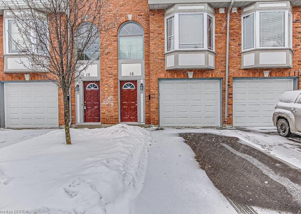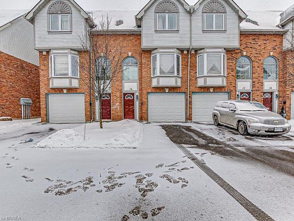 Welcome home to 46 Conestoga Road, Unit 16. This 3-storey home finished top to bottom will not disappoint. Over 1600 sq. ft Condo offers beautiful finishing's throughout. Gorgeous Hardwood flooring, spacious main floor living with a magnificent Italian Marble Fireplace, Hunter Douglas Window Covering, the dining area is elegant with exquisite lighting features, decorated and freshly painted with a sexy style. Kitchen has an eat in area with a beautiful window for lots of natural light. 3 bedrooms up offers plenty of space for family with new carpeting throughout the bedrooms only. The bathroom upstairs has been totally renovated with gleaming tiles and a trendy vanity. This home is located minutes from Toyota, the 401 and 403. Close to shopping, parks, schools. All Appliances included. Visitor Parking.
