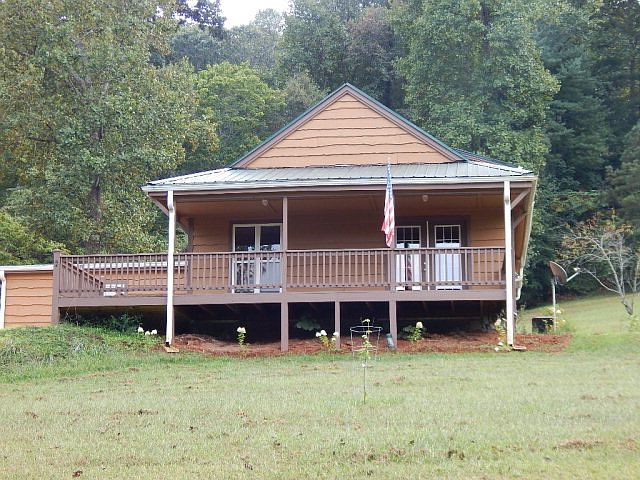 This pretty home is located in the beautiful mountains of Western North Carolina just minutes from Franklin NC in the popular area of Clarks Chapel! Inside you will be pleased to find 2 bedrooms, 2 1/2 baths with a LIKE NEW, NEVER LIVED IN feeling! You will appreciate the quality hardwood floors and lots of natural light from many doors and windows. High beamed ceilings & the open floor plan add to the spacious feeling. The living area has lots of windows and has doors leading to the covered deck or open porch. The new kitchen features granite tops and black appliances! You will love the master on the main level with en-suite which repeats the light open concept and wood floors. Continuing upstairs you will find a special place that is the second bedroom with wonderful details like a sliding barn door to the full bath plus wonderful ceiling details! Back on the main there is a bonus room where company can sleep or use as living space. The laundry is on the main level for convenience. Outside you can relax on the covered deck that overlooks the rolling lawn. Other features include covered parking and a storage building. There is a great sunny yard for children or gardening too!