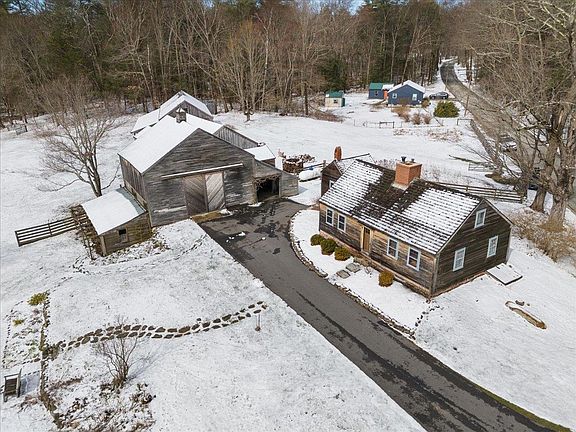 Discover your dream country retreat! This charming vintage cottage, nestled on five acres of lush greenery, boasts a stunning three-story barn, single level finished barn, split rail fences, fruit and nut trees all enveloped by serene woods. Built in 1724, the cottage blends historic charm with modern comforts, offering a cozy living space and ample room for expansion. The barn provides workshop and studio space, ideal for hobbyists or animal lovers. A second building offers versatility as a home office or recreational space and additional vehicle storage. Escape the ordinary and embrace a lifetime of tranquility. Just 45 minutes from Boston and 15 minutes from Portsmouth, convenience meets serenity in this idyllic haven.