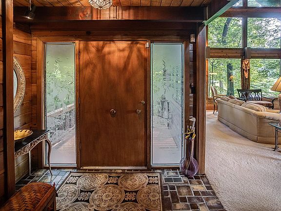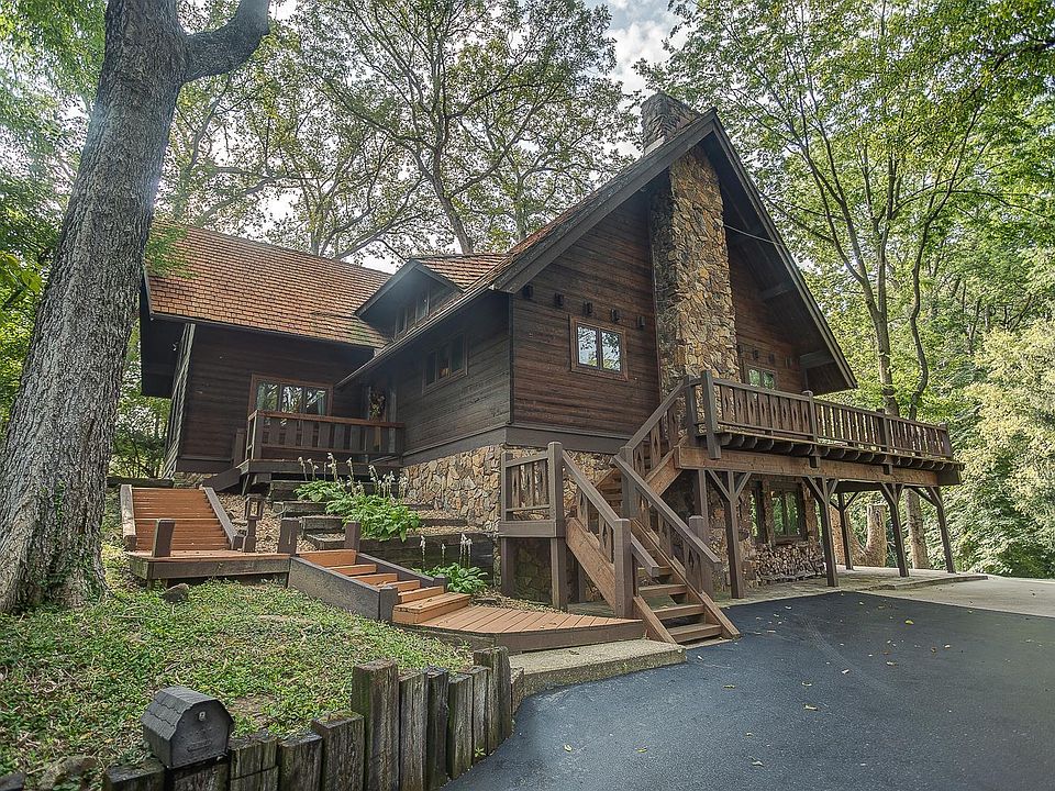 Don't miss this Spectacular Cedar home nestled in a natural wooded & private setting, along the 4th tee of St Clair Country Club. This Architect designed home offers many large windows, & features dramatic 2 1/2 story windows in LR & DR. The spacious kitchen has custom cabinetry, granite countertops & built-in stainless appliances, including magnificent subzero refrigerator & freezer. Floor to ceiling pantries offer abundance of kitchen storage & built-in desk. Main level bath introduces you to a clawfoot tub, antique sideboard vanity & pull chain commode. Top level features the Master Suite, including loft area, MSTRBTH w/jacuzzi, dressing RM filled with closets, & a library w/floor to ceiling book shelves & rolling ladder. LL walk-out offers a FR w/stone FP & buck stove, pool table, wet bar & 2 of the 5 BDRMS. Back of the house features 2 2 car oversized detached garages w/basements & workshop. Make this amazing one of a kind home your own! Agent related. OPEN 9/24 FROM 1-3 PM