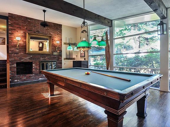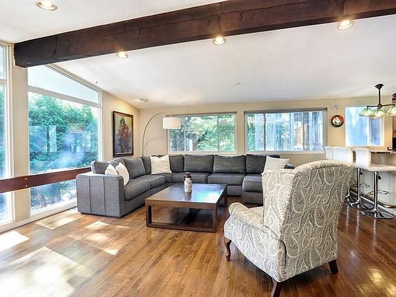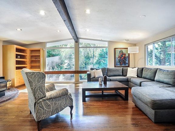 Well maintained mid-century modern with split-level design, set in quiet country neighborhood. Exciting open floor plan and picture windows bring in the natural surroundings from all sides. Gourmet kitchen with granite counter tops opens to family room with exposed beam cathedral ceilings, wood burning stove, and custom built-in cabinets, formal dining room, and living room with floor-to ceiling brick fireplace. Master bedroom suite with fireplace, luxury bath, and balcony overlooking two-story greenhouse/sunroom. Large level backyard, landscaped with mature trees and plantings including Japanese Maples. Enjoy sunny afternoons on the oversized deck or in the "magical" gazebo, screened, with fan, lighting and space for 6-8. Finished walk-out basement with exercise/playroom, office space, and climate controlled wine cellar. Double driveway provides easy and ample parking or play area for kids. Very close to public schools, conservation land, recreation trails, and commuter routes.