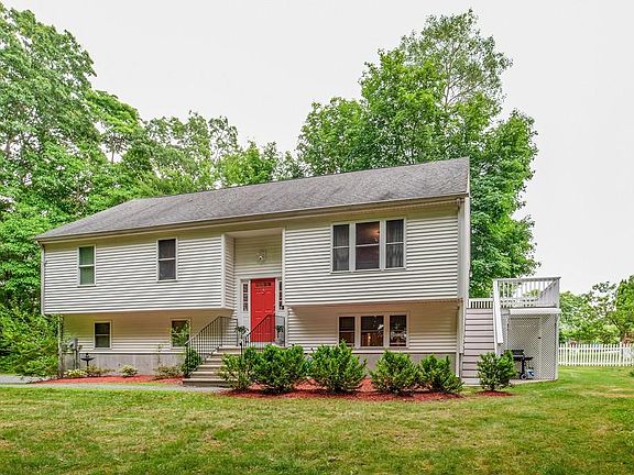 It's your lucky day - This Hidden Gem is back to market & it's tucked privately back from the road and will definitely surprise you when you drive up! Immaculate and well cared for, this home has a great flow through-out the upper and lower levels. Very modern design on the main living space with hardwood floors in kitchen through to the living and dining room areas. There's a large deck off the dining room just newly painted and a great spot for outdoor grilling. Master has its own full bath, two other bedrooms with another full hall bath on upper level. Lower level has a large laundry area with exterior access and entry to the garage. This lower level has a completely separate private bonus /bedroom with full bath en suite...can be used as either part of the main house or separately as an au-pair suite. Location allows for easy access to both the Natick and Framingham commuter trains. A wonderful property set on a quiet and serene wooded lot...a great place to be!