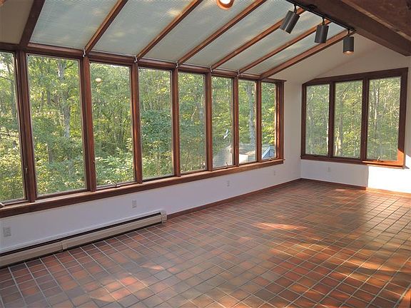 Bordering protected conservation lands and boasting a south facing 25' sunroom overlooking the woods, this post & beam contemporary home on 1+ acre features a floor to ceiling fireplace in the 14' x 24' living room, an efficient kitchen with two ovens and two bedrooms on the first floor. The second floor includes a bedroom with beamed, cathedral ceilings and a slider leading to a deck, a loft overlooking the living room and a bath with a skylight. The walkout lower level includes a pantry, a finished 11' x 29' room, the garage and a 12' x 25' screened area. An Energy Star rated oil furnace and the south facing sunroom help to lower heating bills. Access Nickerson State Park and the Baker's Pond Conservation Lands from the trails leading from this neighborhood close to Orleans.