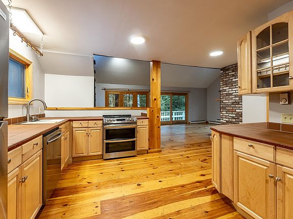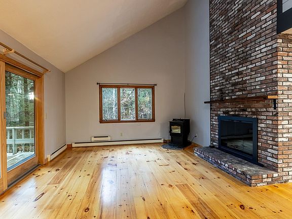 Located just off the trails in Eastman, this 2 bdrm / 2 bath home sits at the end of a cul-de-sac on 6.02+/- acres. Sited back from the road, this home has lots to offer including an open floor plan and wood floors throughout the kitchen, living room and dining area. Whether it's the cathedral ceilings or the beautiful two story wood burning fireplace, you will love spending time in the main living area. There is even a pellet stove. Those that like to cook will enjoy the kitchen with all of its counter space and cabinets, nice large sink and stainless steel appliances. Off the main living area, there is one of the two bedrooms as well as a full bath. Upstairs there is a second bedroom, second full bath completely renovated as well as a large loft area with built-ins. Use as a den or even a place for visiting friends and family to stay. For those looking for one level living, the washer and dryer is located on the main level. In the warmer months, there is a nice size deck off the living area which can be accessed through one of the several sliders. Eastman offers year-round recreation with its lake, championship golf course, tennis courts, cross-country skiing and snowshoeing trails, indoor pool, fitness center as well as a restaurant and pub. Easy access to I-89 and the Upper Valley and Dartmouth/Lake Sunapee Region. This is a great home ideally situated within a short walk to South Cove Activity Center and Eastman Lake. Open House on Saturday, December 2 from 11AM to 1PM.