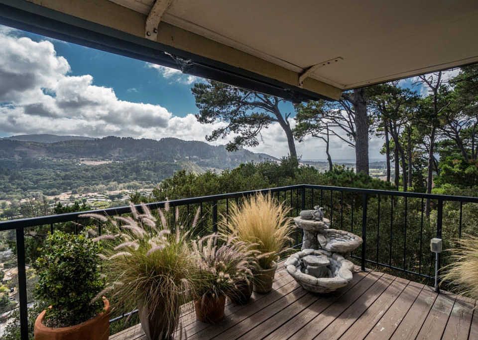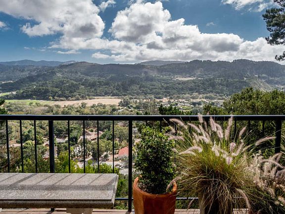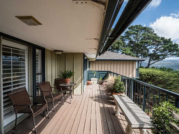 Views! Views! Views! Spectacular panoramic ocean, mountain and Carmel Valley views! Shows like a model! Nicely updated, light and bright, south facing "B" model end unit, spacious 2 bed, 2 bath with den, 1,469 sq. ft. Open floor plan with vaulted ceiling in the living/dining areas and a comfortable den that opens to the master bedroom. The kitchen features updated cabinets and appliances plus a bay window, while the baths have either a shower over tub or a convenient shower stall. Pushed-out walls in both the dining area and guest bedroom. Additional features include a cozy gas fireplace with remote starter, attractive plantation shutters, double pane windows in the master, recessed lighting, crown moldings, inside washer & dryer, ample attic, deck and lower storage, in addition to a spacious wrap-around deck and enormous lower patio for entertaining. Del Mesa Carmel is California's prestigious 55+, 24-hr. gated, active adult community. Care-free retirement living at its finest!