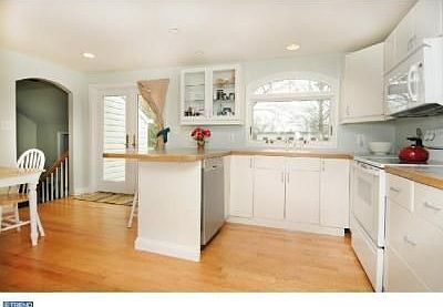 Wonderfully updated Cape on quiet Hopewell Twp road. Long private yard. Cheerful living room, with fireplace, large kitchen with eating are, plenty of counter space, pantry, new appliances, sliders to deck. Two steps down to front to back family room. Two bedrooms and new ceramic tile bath on first floor, upstairs dormatory style space with 1/2 bath and lots of storage space. Full basement, hardwood floors, central air, detached out building.