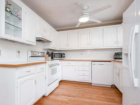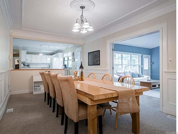 Here is a fantastic, 1,727 square foot ranch with 3 bedrooms and 2.5 bathrooms in an AMAZING St. Peters location! This home is a must-see with an 18 X 19 Sun Room-Family Room off of the back overlooking the level, fenced in yard and outdoor living area. Features include hardwood floors, crown molding, decorative front door with lead glass insert, pendant lights in the Kitchen, smooth top stove, vaulted ceiling in the Family Room, Fireplace, built in wall shelving, attic fan, built in desk and shelving in a secondary bedroom, ceiling fans, 6 panel doors, satin nickel lever door hardware, wainscot wall trim in the large Dining Room (20 X 11) and more. The finished lower level offers a Family Room, Game Room-Play area, bar and half bath adding approximately 657 square feet of living space. This home has great curb appeal with a brick façade, professional landscape, mature trees, vinyl siding, enclosed fascia-soffits, architectural shingles (New in July 2015), maintenance free deck, patio and storm doors. Be near the shopping, restaurants, services and recreation on Mid Rivers Mall Drive. The Rec Plex and desirable schools are a short distance away. There is so much to love…check it out today!