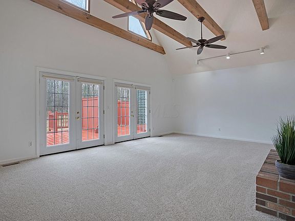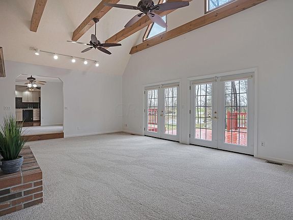 Move-in ready, unique home in Pataskala on over 1 acre with private backyard! Don't miss this opportunity! Tons of upgrades in this sought after one story home surrounded by mature trees. Enjoy lots of natural light throughout this home, a spacious kitchen with abundant cabinetry, double ovens, wood floors, sky lights and access to the four season sunroom. After a long day relax in the owner's retreat with double-sided fireplace, sky lights, updated en suite and sitting room w/ access to the large wooden deck. Updates galore: new flooring, fresh interior paint, updated bathrooms, new roof in 2019, additional bedrooms, and a loft for another great place to entertain. Schedule your private showing today!