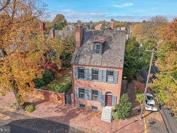Harmony House - This prime historic residence in New Castle stands out as one of the most desirable homes in one of the most sought-after neighborhoods in Delaware. The property has been occupied since the founding of the town in the 1650's, and foundations of earlier homes may have been used when the first section of the late Federal, brick, 2 1/2 story, double parlor, side hall house was built. The Janvier family purchased the home in 1843 and resided here for over 140 years. A complete restoration of the inter and exterior has been performed. All roofs have been replaced, the entire brick house has been repointed, chimney exteriors repaired and new copper guttering installed. Inside is a beautiful, comfortable living area with a flexible floorplan. The front room can be used as a living room and dining room combination or a double parlor. The current family room with gas fireplace could be the dining room. A new sunroom has been added on the first floor that overlooks the beautiful gardens and adds to the flow of the first floor. The gourmet kitchen and powder room complete the first floor. Off the kitchen is the old summer kitchen with cooking fireplace. Upstairs are 4 bedrooms and a dressing room or 5 bedrooms, 2 full baths and a large laundry room. All of the hardwood floors have been refinished, plaster walls skim coated and painted, crown molding restored and over 90% of the hardware thru out the house is original. There is a large basement with abundant storage. A second laundry has been added in the basement with a large capacity washer and dryer. The gas hot water heat and central air provide comfort all year round. There is also an on demand gas hot water heater, so you will not run out of hot water. Outside is a spacious, landscaped garden surrounded by a brick wall and a large brick patio. This home is located just off The Green and features views of the Academy building, Immanuel church steeple and the Old Library. Just a short walk from the Delaware River, Battery Park, shops and restaurants. Schedule your appointment today to see this wonderful home.