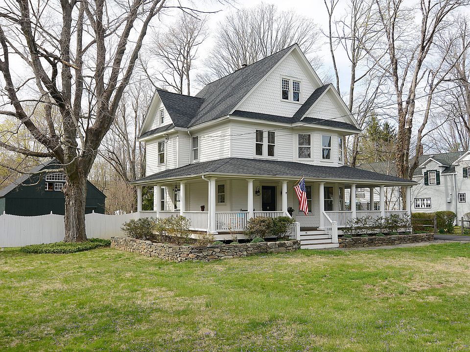 Wonderful 4 Bedroom 1 1/2 Bath Country Colonial in the heart of Mendham! Custom post and beam barn featuring 2+ car garage and spacious loft above. In town location near schools parks and dining. Full wrap around porch offers expanded picturesque views of sheep farm. Grand foyer entrance with wainscoting, pocket doors, stain glass window and sweeping chestnut staircase. Incredibly light filled rooms throughout. Family room and dining room with fireplace are accented with oversized windows. Stunning period floors and mouldings complimenting interior finishes. The updated kitchen offers granite countertops, farm sink, stainless steel appliances and ample room for dining. Charming mudroom with plank vaulted ceiling, adjoining laundry and half bath. Third floor offers endless possibilities for expansion...