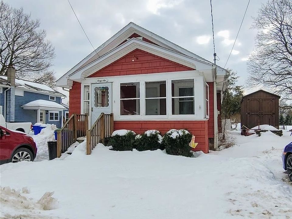Adoring Ranch with enclosed front porch in Lyndonville offers First Floor Everything. Expansive Living/Dining Room, Eat-In Kitchen, Laundry room, Full Attic and Basement w/ bar & pool table (included in sale). Zone and Central Heat. Massive back bedroom overlooks the fenced-in rear yard & village park. Detached 2 car garage with electric.