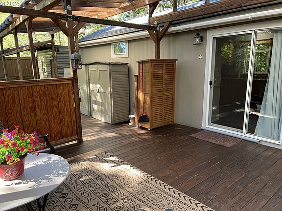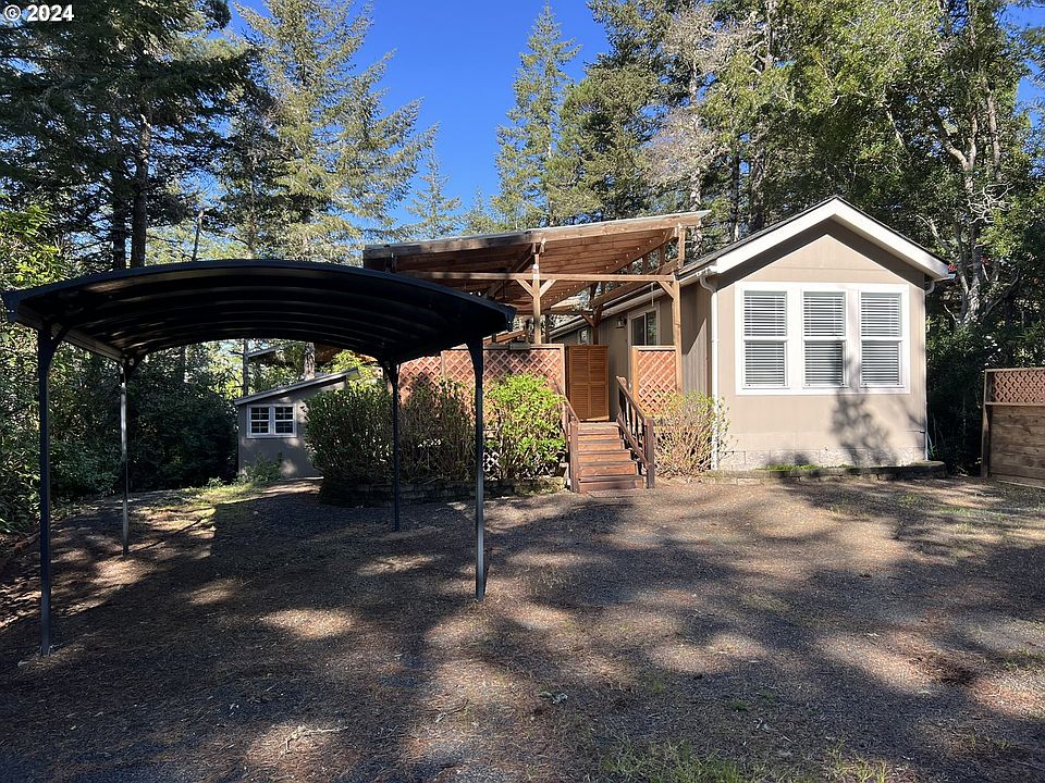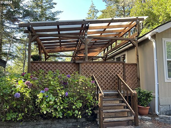 Back on the market.  No fault of the home.  Very nice 1 bed, 1 bath Cascadia Park Model in Coast Village.  Enjoy your outdoor living on the coast with a large covered deck with windscreen.  The interior lives much larger than the square footage would suggest.  This home has vaulted ceilings with 2 ceiling fans, entertainment center in main living area, with elecric fireplace, updated appliances including new propane range with air fryer built in.  Another great update is the whole house water purification system, and drip system for the exterior landscaping.  Property includes a 9X12 shed with washer/dryer and 1/2 bath.  An additional insulated shed works great as a home office. This property is centrally located in Coast Village, and is great for a weekend getaway or full time living.