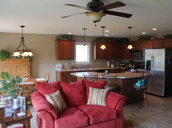 Immaculate 6 year old Chapman Lake home with over 3,300 sq. ft. with 4 bedrooms & 3.5 baths. Beautifully kid friendly 2.1 acre lake property with channel front access & a finished walkout basement with 9' ceilings. Ceramic tile in lower level living area, bathrooms, kitchen & hearth room. All new carpet throughout in 2011. Bedrooms have blackout shades. Kitchen cabinets are constructed with high end light cherry Grabel cabinets. Fireplace is uniquely positioned between hearth room & great room.