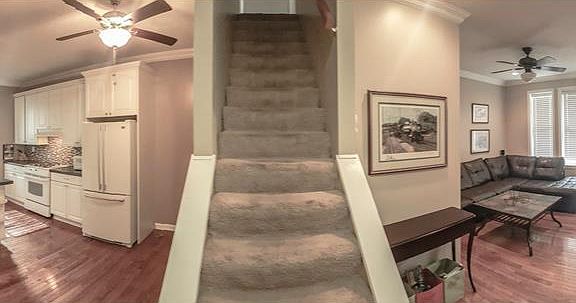 This charming row home is a gem within the city! Gorgeous, updated interior with hardwood floors, crown molding and recessed lighting. The beautiful kitchen features classic white cabinetry and tile backsplash. Additionally, there is a first-floor laundry room. Upstairs are two nicely sized bedrooms and updated full bath with whirlpool tub and separate shower. A third-floor loft is a great bonus area and offers access to a semi-private deck with great views.