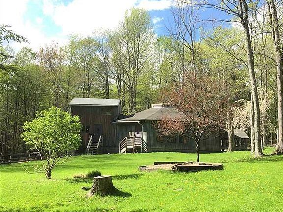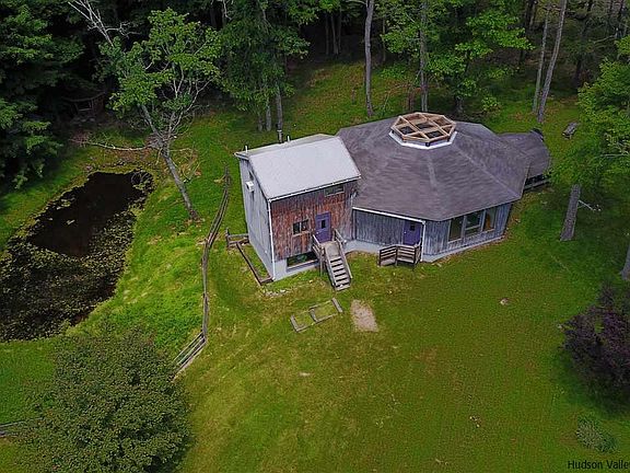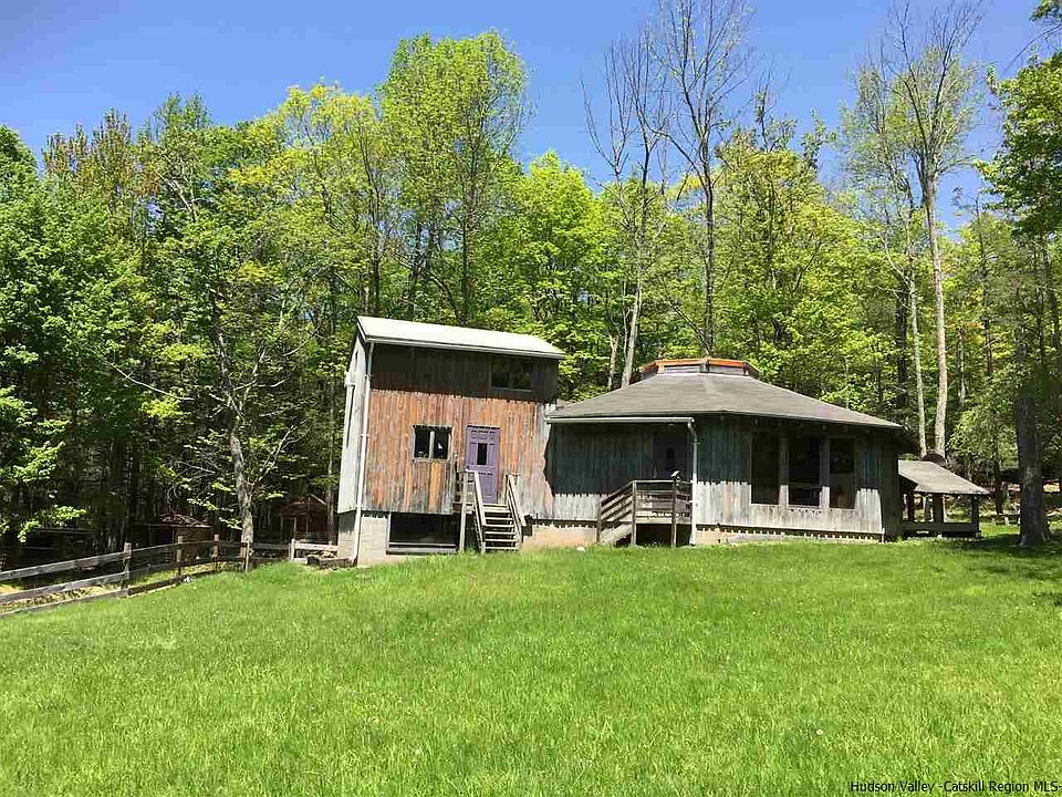 The Ultimate Studio - This amazing 5 acre property has three structures. The Main Building is architecturally fascinating, providing a stunning open space, full of light. Hand built by local craftsmen, there is living & office space as well. The cottage is classic Catskills, with a sleeping loft & vaulted ceilings. Rustic, charming, cozy and still bright. Tucked into the woods & beautifully landscaped. Large windows with multi level, private decking, and an out door shower. The third building is a two story studio, also private & complete with floor to ceiling mirrors, large windows, and a new deck. The Septic & Electrical; systems are engineered for a fourth building. This property could be a fantastic home, or be reborn as a school. Great for Yoga, dance, martial arts, or musical gatherings. The pond, coop, sheds and fenced in areas are ready for the return of chickens, goats, and gardens.