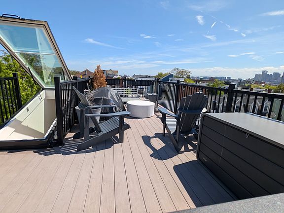 AVAIL 7/15/2025: For rent: Stunning 2 bedroom, 2.5 bathroom penthouse (1,135 sqft) in a beautifully restored 1845 brick Mansard Victorian (w. an Eagle Hill historic plaque). The home offers a mix of historic charm, contemporary flare & modern appeal. VIEWS: Bask in city views from every room & on your private 190 sq ft roof deck w. stunning city & sunset views. Both bedrooms are ensuite w. walk-in closets & overhead lighting. Plus there's a stylish half bathroom for guest use. Features include exposed brick, oversized bay windows, 9'5" ceilings, central air, in-unit W/D & 1 parking spot. The chef's kitchen boasts an 8.5 ft quartz island, wine fridge, double pantry, a handcrafted backsplash & more. Thoughtful design & abundant natural light throughout. Pets considered. First month, security, broker fee & references required. Minutes to downtown, Maverick T, major routes, airport, Shaws + neighborhood eateries. A true STUNNER / rare rental offering in East Boston's Eagle Hill. Owners pay electric and gas, and wifi.