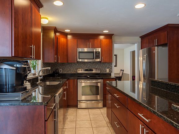 - Kit Dscrp: Flooring - Hardwood, Countertops - Stone/Granite/Solid, Cabinets - Upgraded, Deck - Exterior, Kitchen Island, Recessed Lighting, Countertops - Upgraded