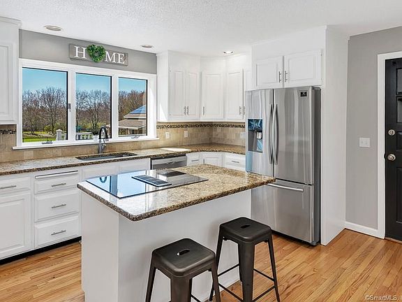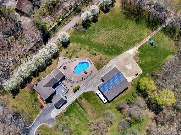 Celebrate space in this exceptional 10 room 3806 sqft colonial featuring 5 bedrooms including 2 master suites and 3 full 3 half baths set on a 2.52-acre country lot. The entire home has been beautifully updated inside and out. A 2-story addition includes a master bedroom suite w/ full bath, cathedral ceiling, pellet stove, hardwood hickory flooring & walk-in closet, living room, laundry room, 2 half baths. The basement below is finished with a playroom/gym/office, 1/2 bath and a large rec/family room that walks out to the gorgeous inground pool and patio Other recent additions include a huge Trex deck and an unbelievable 2400 sqf insulated and heated detached garage/workshop w/ a 12,000 lb vehicle lift Along w/the attached 2 car garage you could fit 4 more in this monstrosity Enter the updated kitchen w/granite countertops and center island cooktop, SS appliances, hardwood floor and white cabinets. Cozy up to the beautiful fireplace in the living room. On the 2nd floor there are 4 more bedrooms including another large master w/hardwood floors and a custom tiled walk-in shower. Additional upgrades include fresh neutral paint and refinished hardwood floors throughout, septic tank upgraded to a new 1500 gallon capacity, new solar system, whole house attic fan, new gutters w/leaf guards, large stone firepit. Meets town approval for 1 horse. Have it all w/this incredible home in a rural quiet setting yet close to the highway. This home is a rare find & a must see