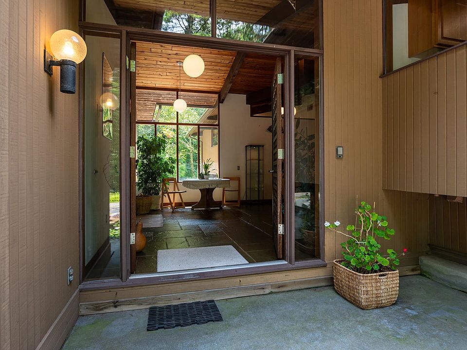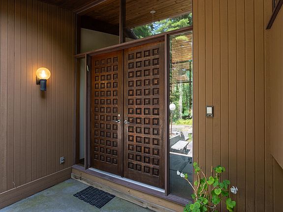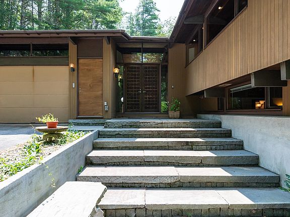 Spacious Contemporary authentic Deck Home on 5.9 acres of ultimate private property with plenty of wooded and lawn areas for a variety of outdoor activities. The home is ideally set up for easy and elegant entertaining and luxurious living. Extraordinary maintenance-free pillar and mahogany beam home. The private driveway takes you past the peaceful pond and to a serene yard with an oversized tennis court and garden space galore. Sprawling granite walkway to the dramatic front entrance with handcrafted double mahogany doors that open to the stunning two-story foyer with slate flooring. The grand living room with a raised fireplace and teak shelving is open to the dining room where you can step out to the peaceful side deck. Granite kitchen with cozy breakfast area and pantry. Perfect home office, lots of daylight and a view of the private yard. The primary suite has a fireplace with a slate hearth, 4 closets and full bath. Step down to the family room via the spiral staircase or from the foyer. It has glass doors to the outside, a wet bar and a brick fireplace. There are 3 bedrooms and two full baths on this level. Take the spiral staircase or stairs down to the lowest level to the large game room with a pool table and wine cellar. It would be ideal as an in-home gym, music room, hot-tub room, playroom, etc. Set in a superb location close to shopping, schools, and major highways.