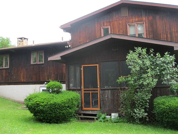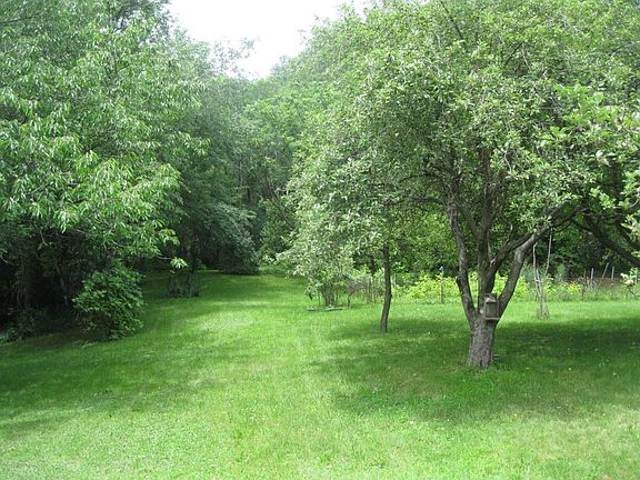 3 bedroom, 1 1/2 bath split level with 2 car garage, fantastic ratskeller/wetbar in basement with real wood plank walls & stone fireplace, large screened-in rear porch, large lot with many fruit trees in very private setting.
