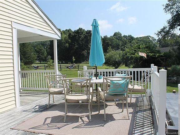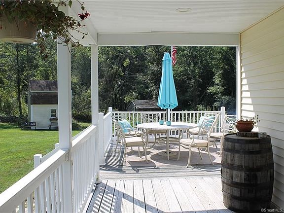 Down a long, private drive you'll find 46 Gardner tucked away and surrounded by nature. Looks can be deceiving - as what may seem to be a quaint home with a picturesque wrap-around porch, actually boasts a large open concept living area, high vaulted ceilings with exposed beams, 4 bedrooms and almost 1800sq feet. The updated kitchen, with center island, opens up to the dining area and living room. Great for entertaining. Hardwood floors throughout and a gorgeous stone fireplace bring this space together beautifully. The main floor has 3 bedrooms and a full bath, along with a mudroom hallway where laundry is also located. The main bedroom suite with full bath sits privately on the second floor. Back outside through the kitchen sliders, you'll find a large deck and patio overlooking your acreage. A barn sits towards the rear of the backyard, past the fire pit. You'll also notice a few other garden areas that break up the level lot nicely. Don't forget about the 3 car garage! Plenty of space for a workshop or studio. If 5 acres isn't enough for you, you'll enjoy being right next door to Pachaug State Forest - with 24k more acres and some of the best trails in CT!