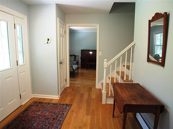 Attractive 9 room, 4 BR, 2.5 bath CH Colonial nestled on private .82 acre. Sewer assess. paid off; all buyers have to do is hook-up. HW floors; gracious living room w/fireplace; formal dining room; Striking EIK w/white cab's, granite cntps, Carrera marble backsplash, breakfast bar, & SS appliances; updated half bath w/granite cntp; inviting family room w/vaulted ceiling, woodstove, & French doors to 3-season porch. MBR w/ WI closet & private bath, 3 large BR's, cozy library in walk-up attic (not in SF), & stylish updated main bath w/granite cntp. Gas heat; Central air & vac, Cedar impressions siding, newer cedar deck; patio, newer TP windows, French doors, & sliders in finished w/o LL, Sprinkler system, Security system, & 3 car gar. Wow!