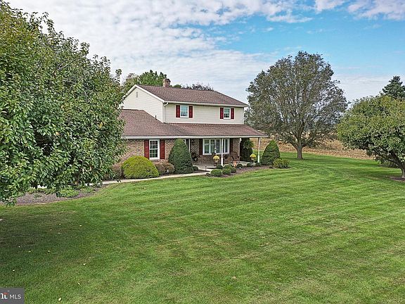 Well-maintained two-story home with country setting (2 acres). Living room with bay window, kitchen with quartz counter tops, porcelain backsplash and floor, cherry cabinets with water stain, dinette area, formal dining room, year-round sunroom with mini-split unit, two ceiling fans, light-filtered shades, remote-controlled awning, first-floor laundry/1/2 bath, family room with gas fireplace and custom-made shutters, two full second-floor bathrooms recently renovated with new fixtures, vanities, cultured marble counter tops, mirrors and engineered flooring; replacement windows throughout; 40-year roof shingles, attached two-car garage and detached two-car garage with metal roof and siding; underground electric and much, much more!! Appliances--Dishwasher, microwave, electric smooth top stove and single convection oven, french door refrigerator/freezer, electric washer & dryer