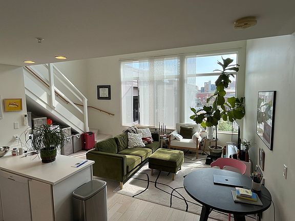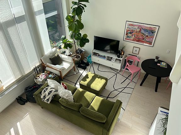 One of a kind, architecturally designed modern living at its best. Come home to your west facing, sun drenched apartment with floor to ceiling glass. Did we mention that it has 18 foot tall ceilings? This is a space that truly has to be experienced to appreciated (the photos don't do it justice). The building was built a little over 5 years ago. The apartment features ash hardwood flooring throughout with tile in the bathroom. Radiant floor heating in the bathroom for those cold winter mornings. Fully equipped with an AC system for the hot summer months. In unit washer and dryer to do laundry at your convenience. Kitchen has stainless steel appliances including a dishwasher. The bedroom is located on the second level. It has a large walk in closet (not pictured) to store all of your treasures. Everything you need right at your fingertips combined with an amazing location within walking distance of India Street shops, the waterfront, and the Old Port. What more could you ask for? This lovely space will be available July 1st for a 1 year lease. The rent is $2400/mth which includes everything (even high speed internet). We are looking for a single occupant to rent the space with no pets. Please let us know what questions you have. 1 year lease.