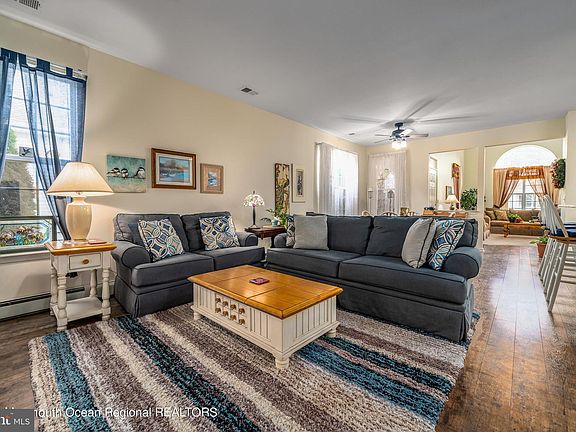 Fabulous MOVE-IN READY Nantucket model in the active adult community of Heritage Point. Featuring 2 spacious brs and 2 full baths, formal dining room (can be 3rd BR/Den), vaulted Liv Rm. Kitchen is open to dining area and family room (great for entertaining) features granite countertops, pantry closet, plenty of cabinet space and garbage disposal. Efficient, comfortable Hot Water Baseboard heating and central AC. Large 2-car garage with ramp access (easily removed if necessary). Private covered patio. Level lot backing to common area with privacy from landscaping. Nearby Spa clubhouse features heated in-door pool, sauna, tennis courts... and the 2nd clubhouse across the way has outdoor pool for summer relaxation. Short drive to bay beach/dock, LBI. Don't miss this one - Call today!