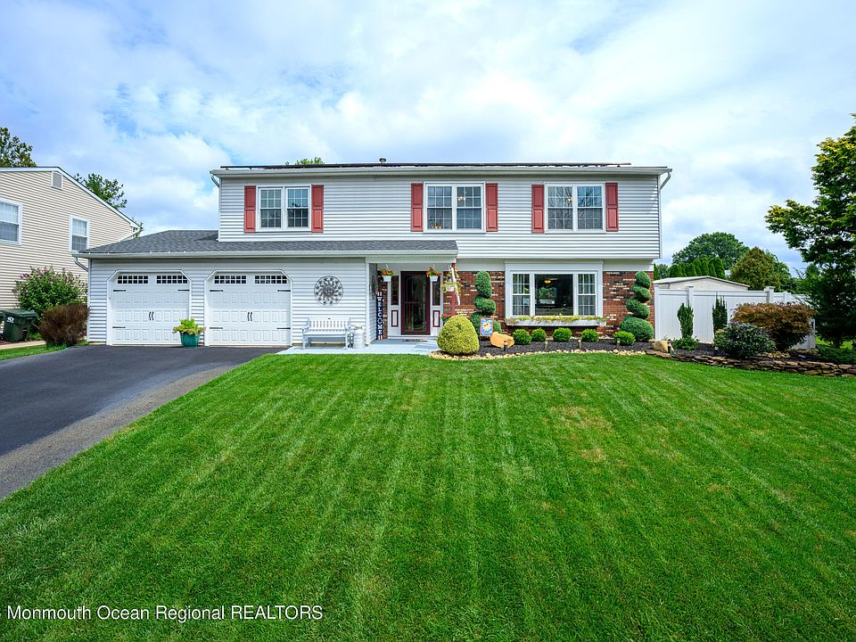 The yard boasts a maintenance free Trex deck & overlooks the 18-36 ft. in-ground pool. A gas line powers your BBQ gas grill year-round. Flowers and bushes dot the sod laid lawn, is watered by a well-fed underground irrigation system. Cedar closet in gargage. Leased solar panels will save you money