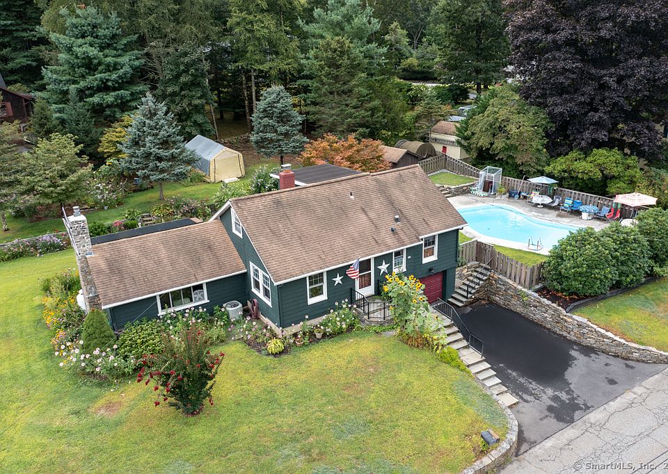 Charming home located just out of town. Nicely laid out for entertaining in and out. Large living room with fireplace and cathedral ceiling. 2 Bedrooms and a full bath on the main floor. 11x20 Eat In Kitchen with granite counter tops. Second floor has a sitting/play area, 2 bedrooms and a 1/2 bath. Rear screened porch overlooks the terraced backyard. Large 13x34 deck steps down to the inground pool. Central Air. Distant view of Gillette's Castle. 1 Car under garage. Full basement with workshop. (*second floor has low ceilings) 2 Driveways with 4 spots.