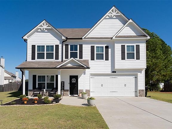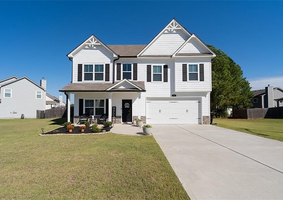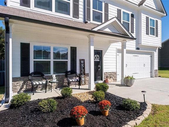This beautifully designed residence sits on a spacious lot and offers a warm welcome with a cozy sitting room that can also  serve as a formal dining space. The open-concept great room features a charming fireplace and flows seamlessly into a  gourmet kitchen equipped with granite countertops, elegant white soft-close cabinetry, stainless steel appliances, a breakfast  area, and a central island-perfect for entertaining or everyday living.  The main level also includes a convenient laundry room and a stylish powder room. Upstairs, retreat to the oversized master  suite complete with his-and-hers walk-in closets, a double vanity, and a luxurious master bath with a separate tub and  shower. Three additional bedrooms and a full bath provide plenty of space for family or guests. Enjoy professionally landscaped grounds, a welcoming front porch, and a two-car garage with  opener. Ideally located near shopping, dining, medical facilities, and a variety of indoor and outdoor  entertainment and recreation options.  Preferred lender offering up to $2,000 in lender credit OR a one-year home warranty when buyer utilizes GRA.