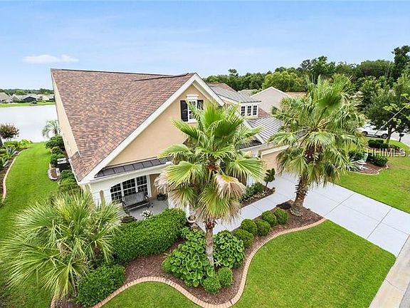 Stunning 3BR, 3.5 BA, (ea BR with its own en suite bath) Morningside Lane model home With lagoon lake views. Lg side yard provides lots of space between the houses, plenty room for a golf cart garage. Gourmet kitchen, granite, natural gas FP, sunroom that leads to large screen porch and patio that has natural gas for grilling, newer roof, flat and tray ceilings, Walk up stairs to the attic and so much more. The landscaping is probably the most beautiful in Sun City with 25 palm trees.This home cannot be duplicated for this price.