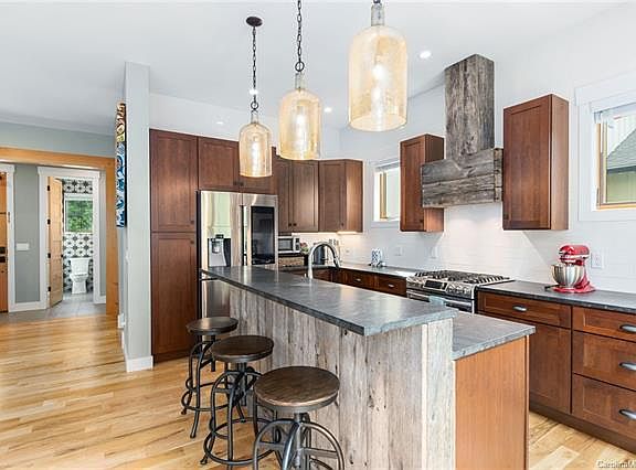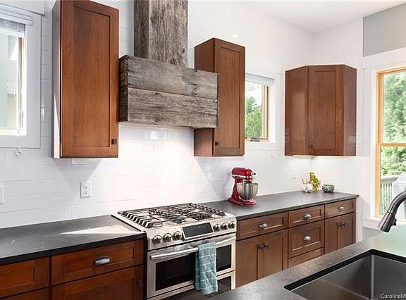 Rare opportunity to purchase an award-winning, Parade of Homes Craftsman with modern flair by JAG Construction in desirable Montford neighborhood. Walkable/bikeable to downtown Asheville, this GreenBuilt and EnergyStar home boasts too many custom features to name. Chef's kitchen is adorned with local barnwood detailing and exudes the quality found throughout this house. Three bedrooms and two full bathrooms upstairs includes a primary suite featuring a white-washed tongue-and-groove cathedral ceiling, large walk-in closet, treetop views and a luxurious ensuite bathroom. 10-foot-plus ceilings and large windows in the finished walkout basement give a bright and airy feel. Large bonus room, bed, bath and storage in the basement. Enjoy outdoor living on your covered front porch, wraparound deck, covered patio, and fenced back yard with boulder firepit. Backyard extends beyond the fence to a creek in the rear. Multiple offers received. Highest and Best by Friday, July 31 at 6pm.