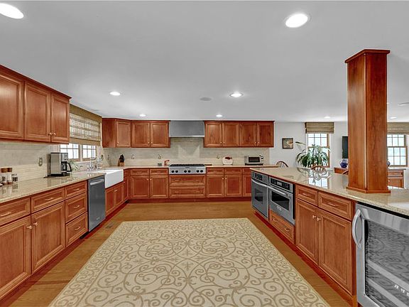 A unique opportunity to acquire a fully renovated Farmette Country Estate in the highly sought-after Cumru Township, Berks County, PA, on over 8 acres of serene landscape. The custom-redesigned home offers approximately 3,500 square feet of open floor-plan living space. It features random-width hardwood floors, cedar siding, wood shutters, and doors, blending historic charm with modern amenities. Enjoy a high-end kitchen equipped with KitchenAid appliances, including a wine refrigerator, a six-burner gas cooktop, an oversized oven, and a French-door refrigerator. The house also includes Baldwin Brass hardware, Kohler toilets, a clawfoot tub, and a corner whirlpool in the master bath. A full-house wired stereo system extends to the outdoors, where multiple seating areas offer a peaceful forest setting.