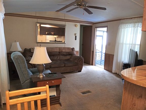 Quiet serene setting tucked away in DeLeon Springs. Hidden Valley Park is a well established family owned park. It has a monthly calendar filled with activities for all to enjoy! The lot rental fee is very reasonable, $380. includes water, lawn service, sewer and garbage. A/C replaced less than 2yrs. 14 seer with electrical upgrades! Roof is double sealed and insulated for perfect temp and bills! New vinyl wood flooring in kit & main bath and plush carpeting throughout . Convenient large utility/workshop attached along with carport. 12X20 Screened patio to enjoy the perfect weather! The beaches are so close and Orlando area is just far enough away… The area has state parks with springs, rivers, boating, camping, hiking, golfing, your adventures would never end in this part of Florida. Come see for your self you can truly live and enjoy The Florida lifestyle! This is a great opportunity to own your home!! Physician certified service animals are allowed.